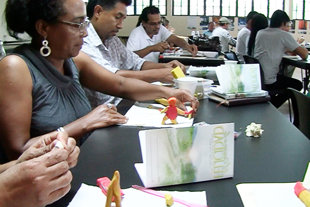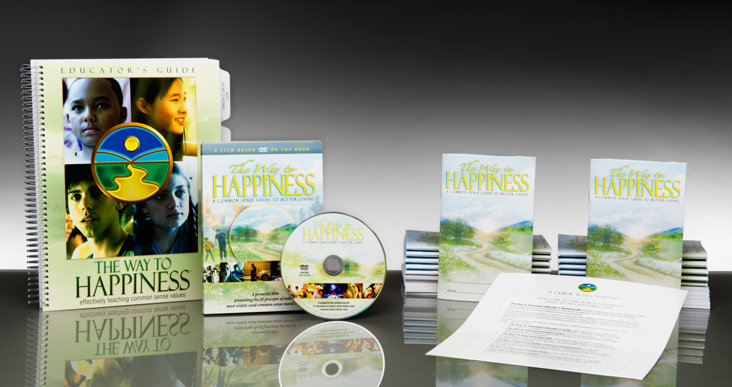El Paquete del Educador de El Camino a la Felicidad contiene todos los materiales necesarios para implementar el programa. Hay disponibles tres versiones del Paquete del Educador; una para los maestros de escuela primaria y secundaria, universidades y grupos juveniles (arriba al centro), otra para instructores que dan formación en empresas y ejecutivos de recursos humanos, y una tercera para usarse en instituciones penitenciarias y para los que trabajan en el campo de la rehabilitación del criminal.